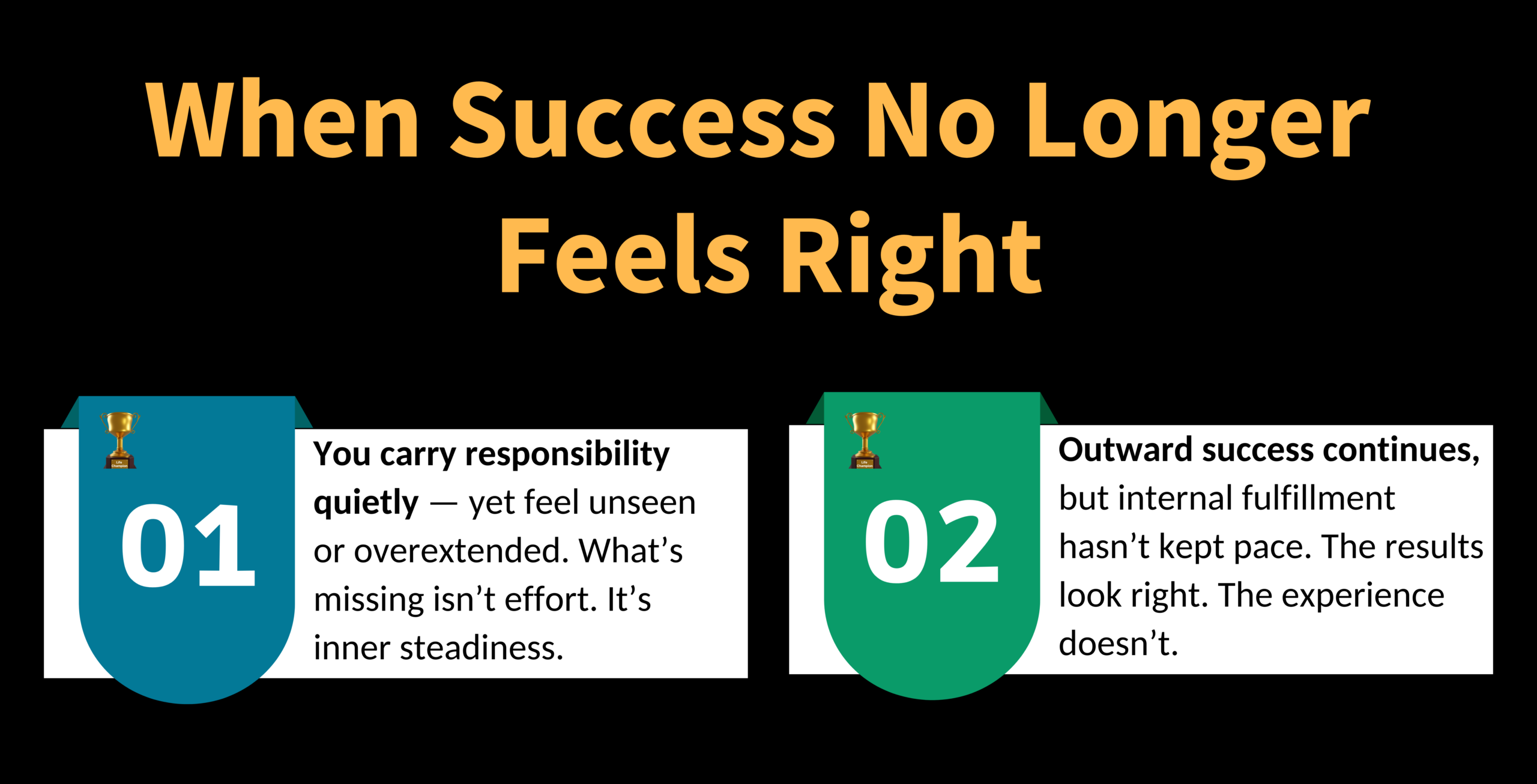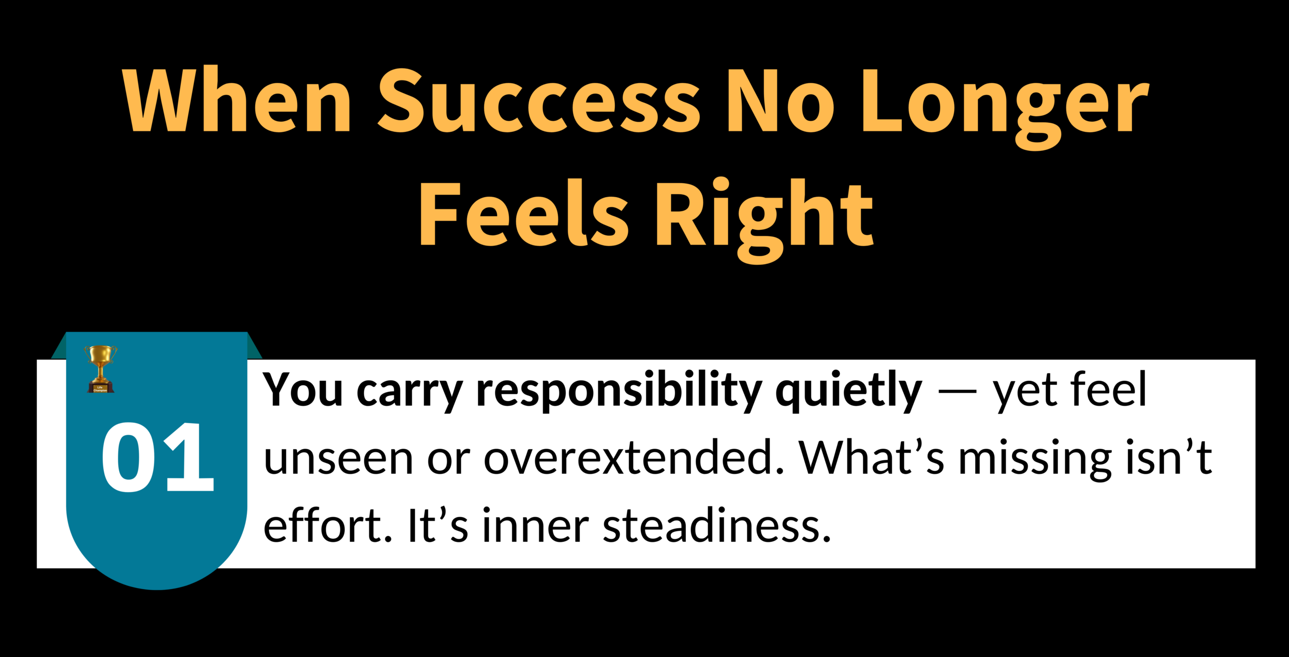 Why? Because responsibility without internal alignment slowly becomes silent weight. Over time, that model of success begins to cost more than it gives — quietly, internally, and persistently. So decisions multiply. Responsibility accumulates. Inner steadiness is asked to stretch further each time. And yet—something still feels missing.